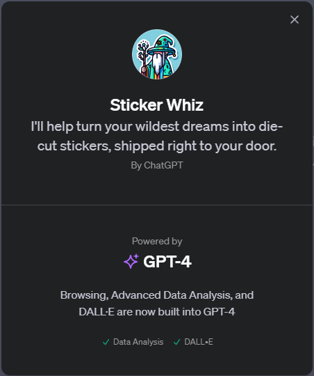 "Sticker Whiz"에 대한 더 구체적인 설명이나 맥락이 제공된다면, 더 정확한 정보를 제공할 수 있을 것입니다. 현재로서는 GPT-4를 스티커 관련 창작 활동의 도우미로 활용하는 방법을 상상할 수만 있습니다.