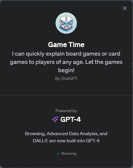 현재 GPT-4에는 "Game Time"이라는 특정 기능이 내장되어 있지 않습니다. GPT-4는 텍스트 기반의 대화형 인공지능으로, 다양한 주제에 대한 정보 제공, 대화, 텍스트 생성, 문제 해결 등에 사용됩니다. 그러나, GPT-4를 사용하여 게임과 관련된 다양한 활동을 수행할 수 있습니다.